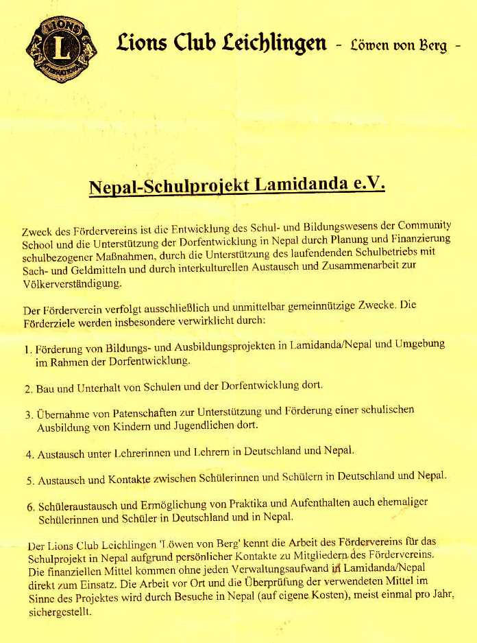 Mit dem Reinerlös einschließlich erfolgter Spenden i.H.v. 1000 Euro unterstützen wir das Nepal-Schulprojekt Lamidanda e.V..